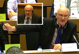 UKIP MEP Stuart Agnew questions AGRI commissioner Phil Hogan at the AGRI committee meeting of the 03.12.2014 in Brussels