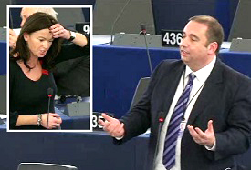 UKIP MEP Bill Etheridge puts a bluecard question to Socialist MEP Fajon, Strasbourg, 16.12.2014
