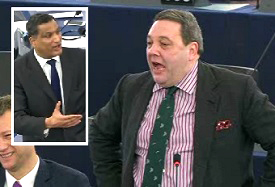 UKIP MEP David Coburn puts a bluecard question to Tory MEP Syed Kamall, Strasbourg, 17.12.2014