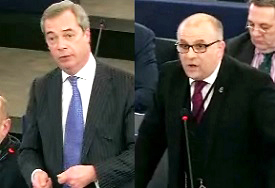 UKIP Leader Nigel Farage and UKIP MEP James Carver speak during the vote on Resolution on Recogniton of Palestinian statehood, Strasbourg, 17.12.2014