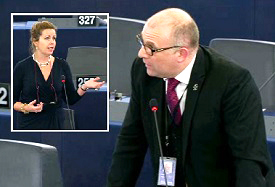 UKIP MEP James Carver bluecards Liberal MEP Cecilia Wikstrom, Strasbourg, 17.12.2014