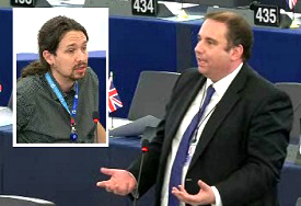 UKIP MEP Bill Etheridge bluecards United Left MEP Pablo Iglesias, Strasbourg, 14.01.2015