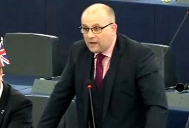 UKIP MEP James Carver speaks during the debate on the humanitarian crisis in Iraq and Syria, Strasbourg, 11.02.2015