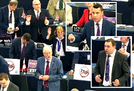 UKIP MEPs Jonathan Arnott and Steven Woolfe speak during the debate on whether to postpone the TTIP debate following postponement of vote on the TTIP report
